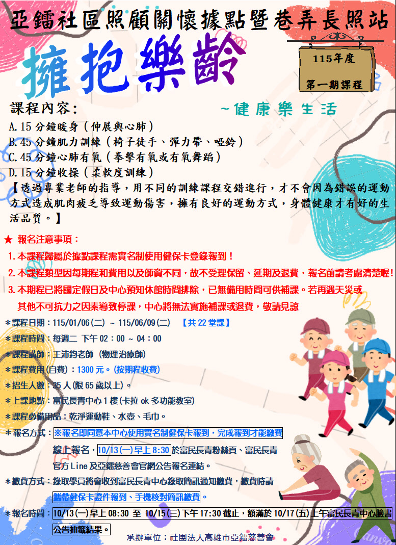 ★115年度【擁抱樂齡第一期課程】招生公告!!